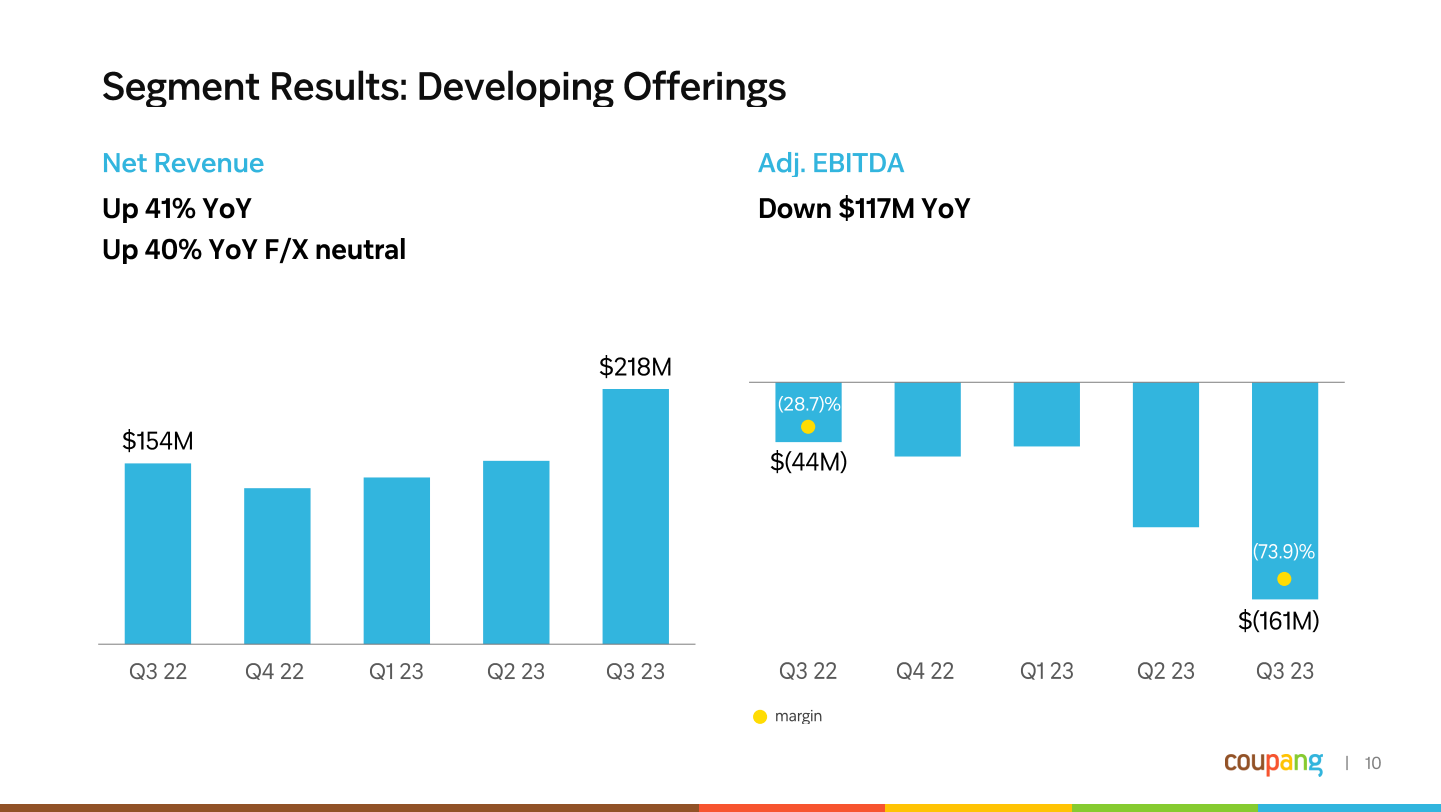 - 쿠팡에서 커머스(Product Commerce)는 안정적으로 크는 반면, 신사업(Developing Offerings)는 성장이 조금 정체